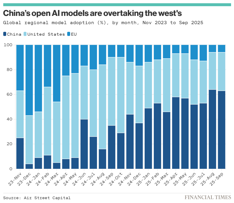 W przyszłości Chiny najprawdopodobniej osiągną przewagę w zakresie stosowania modeli open source. Najnowszy raport Air Street Capital pokazuje, że Chiny wyprzedziły Stany Zjednoczone pod względem miesięcznej liczby pobrań modeli sztucznej inteligencji.